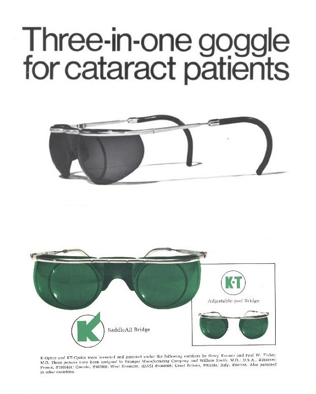 Оптикалық индустрияда поликарбонат линзаларын алғашқы рет қолдану. Қазіргі таңда поликарбонат линзалары АҚШ-та стандартқа айналды, бірақ бұлай болмаған. 1965 жылы Younger Optics алғаш рет осы материалды катаракта операциясынан өткен науқастарға арналған көзілдіріктерде қолданды.
