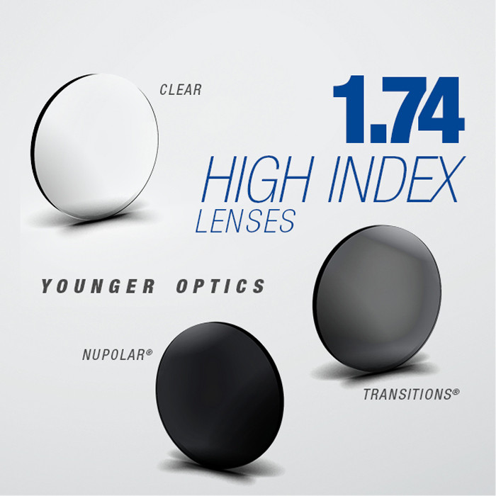 1.74 индексін енгізу. Әдетте оптикалық материалдарда, индекс неғұрлым жоғары болса, линза соғұрлым жұқа және косметикалық тұрғыдан тартымды болады. Индустрия CR-39-дан 1.5 индексінде революциялық 1.74 индексіне дейін ұзақ жолдан өтті. Younger Optics осы индекс бойынша жартылай дайын линзалардың кең ассортиментін сақтауға ұмтылады. 2022 жылдың мамырында 1.74 индексіндегі дайын өнімдер қатарына NuPolar линзалары қосылды.